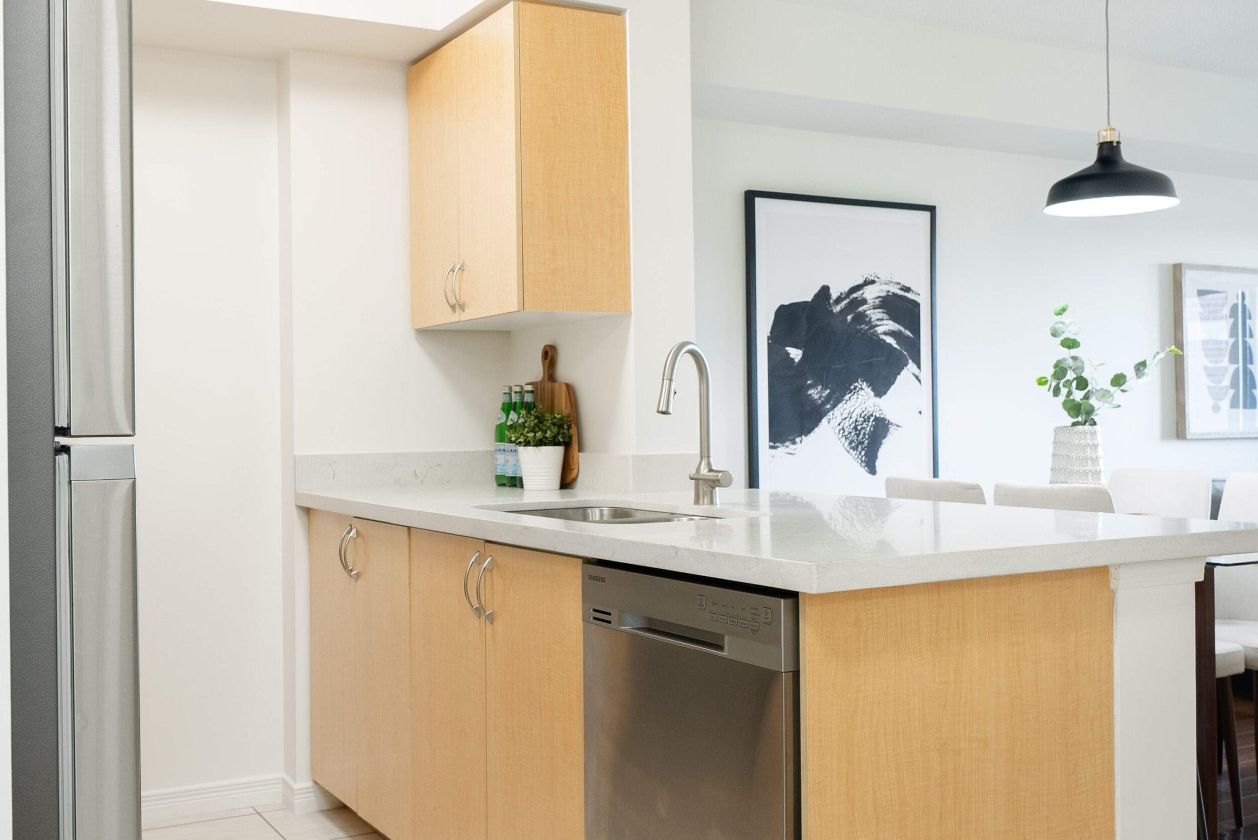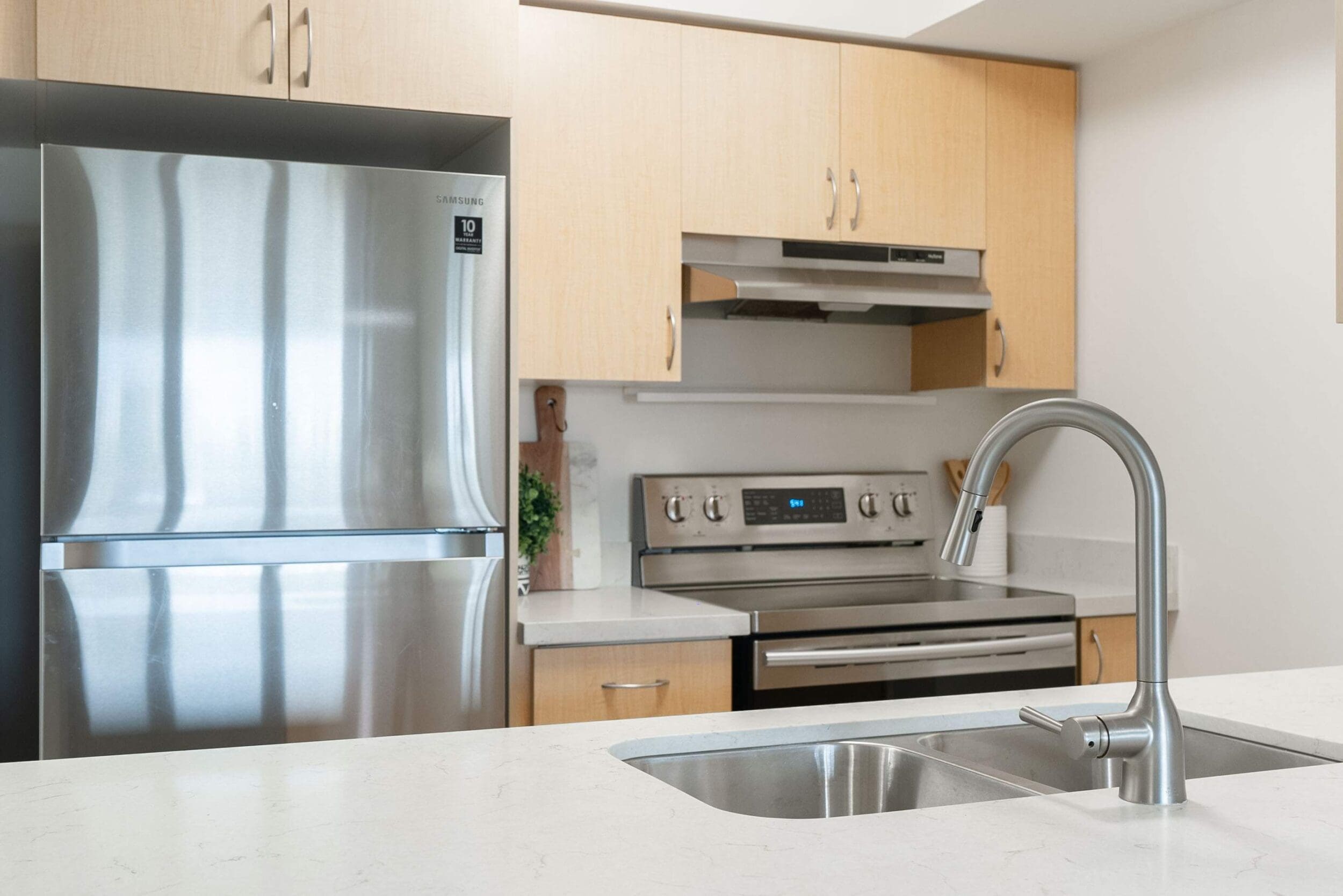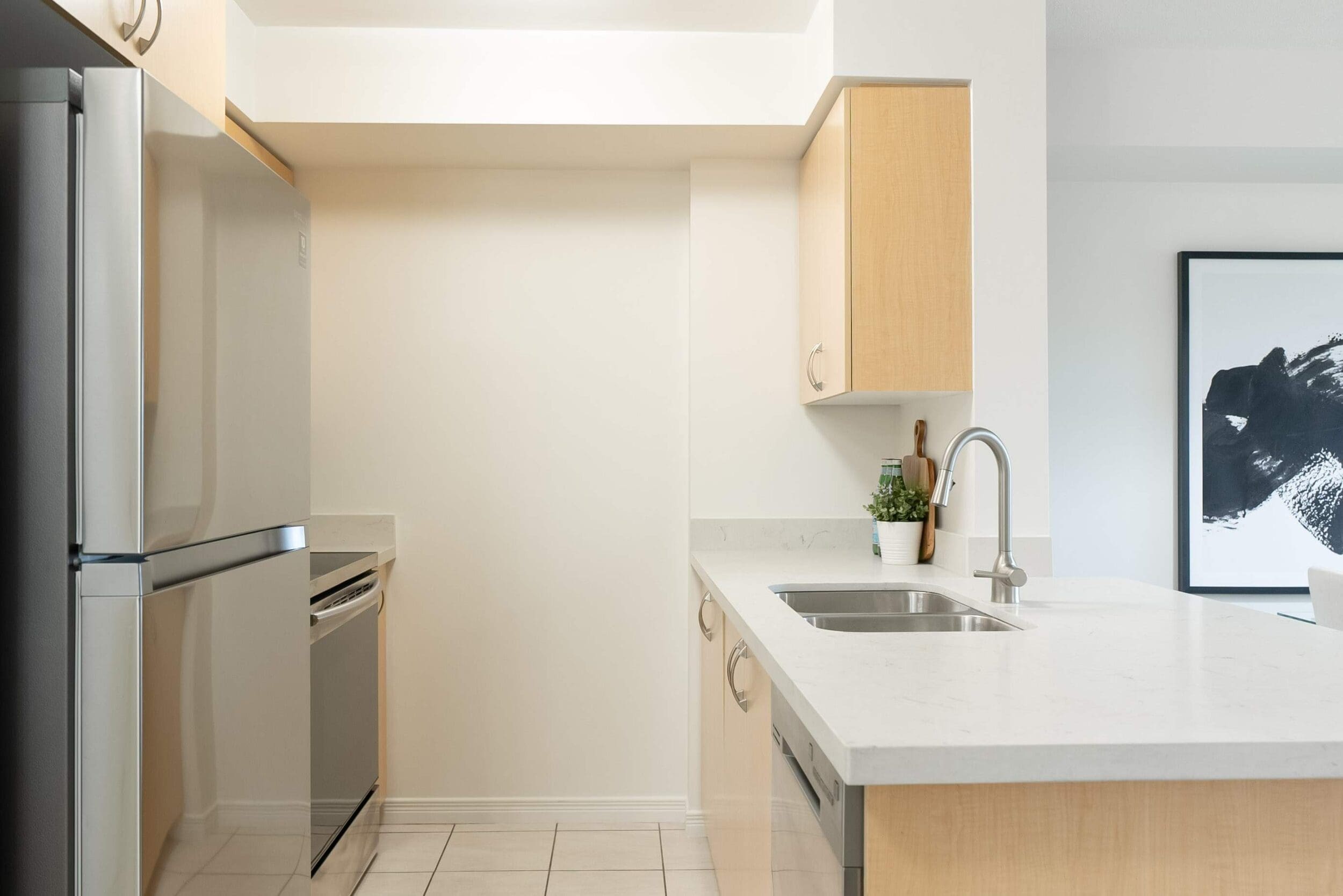 Designed with comfort and functionality in mind, this unit features a large primary bedroom, ideal for restful nights and lazy weekends. The open living area provides ample space for relaxation and entertaining, while the kitchen is a culinary delight with its quartz countertops and stainless steel appliances.